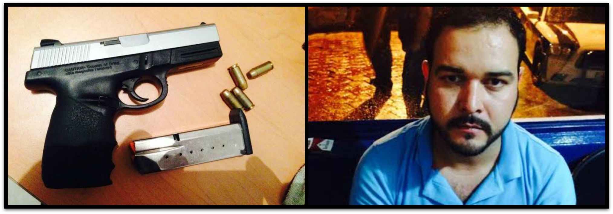En un hecho posiblemente constitutivo de un delito, los elementos policiales fueron alertados acerca de la presencia del sujeto, el cual a decir de los reportantes, llevaba fajada un arma de fuego en el pantalón, y en las inmediaciones de conocido bar del centro de San José del Cabo. Al atender de manera puntual el llamado, los agentes del orden procedieron a realizar una revisión a la persona reportada, encontrando que la misma llevaba efectivamente, un arma de fuego fajada en la parte posterior de su cuerpo, resultando esta de la marca Smith and Wesson; calibre 40.