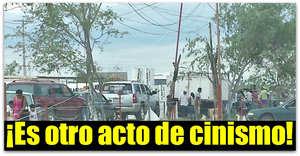 Narciso Agúndez Montaño se presentó en el sitio con un camión recolector de basura y una pipa de agua propiedad del Partido del Trabajo y otros camiones de una persona identificada como Erick Rodríguez Cosío en lo que ya son los primeros actos anticipados de campaña de ese organismo político, aprovechando que en el Instituto Estatal Electoral siguen de vacaciones.