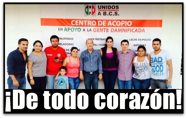 El centro de acopio tendrá lugar en las oficinas generales de CNOP-Estatal, ubicada en la esquina de M. Abasolo y 5 de Febrero en La Paz, BCS, con un horario de 9 de la mañana a 8 de la noche, todas las aportaciones serán destinadas a los damnificados por los recientes fenómenos meteorológicos.