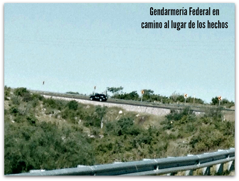En este momento (10:40 AM), ya se encuentran en el sitio además de los oficiales de la Gendarmería Federal, elementos de los Servicios Periciales de la Procuraduría de Justicia en las primeras indagatorias.