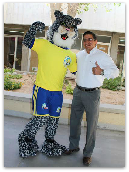 La Paz, B.C.S.- El Cuerpo Académico de Políticas Públicas y Desarrollo Económico, del Departamento Académico de Economía de la UABCS, presentó a la comunidad universitaria la botarga del “Gato Salvaje”, como parte de un proyecto denominado “Identidad Corporativa y Marketing”, a cargo del Dr. Plácido Roberto Cruz Chávez y de la M. en C. Karla Sofía Burgoin Castro. El objetivo de este proyecto es rescatar la figura representativa de la Universidad Autónoma de Baja California Sur.