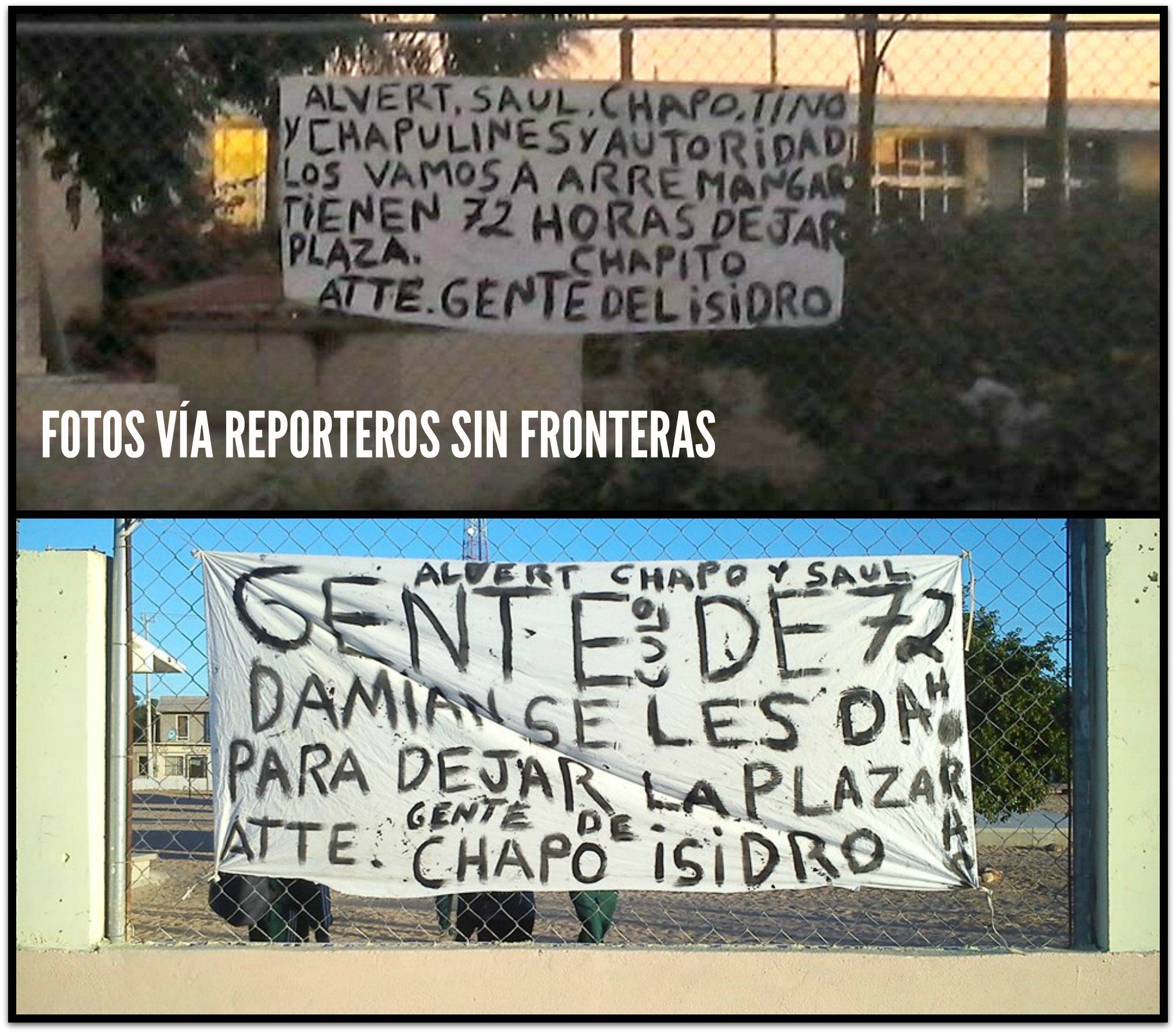 La mañana de hoy, de acuerdo a informes que llegan a nuestra redacción vía Reporteros Sin Fronteras, fueron colgadas dos NARCOMANTAS en escuelas de la comunidad de Vizcaíno, con mensajes amenazantes y que fueron retiradas muy temprano por oficiales de la Policía Municipal de Mulegé.