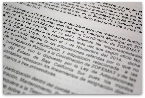 * La falta de comprobación de gastos por más de 3 millones de pesos de algunos funcionarios municipales, donde destacan Guillermina Botello con un millón 338 mil 200 pesos; Adolfo Palacios, con un millón 840 mil 776 pesos; y José Alfredo Álvarez Vizcarra, con 152 mil 418 pesos.