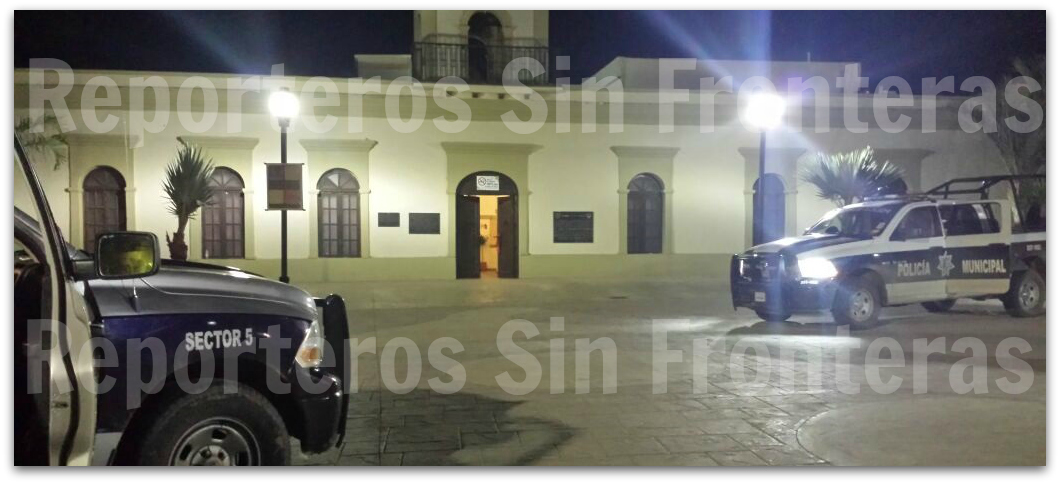 De acuerdo a los primeros informes obtenidos por REPORTEROS SIN FRONTERAS, a las cinco de la mañana ocurrió una movilización de elementos de la Policía Municipal en la zona centro, debido a que en el cambio de guardia, se dio aviso de que el oficial de resguardo de las oficinas se encontraba amordazado y golpeado.