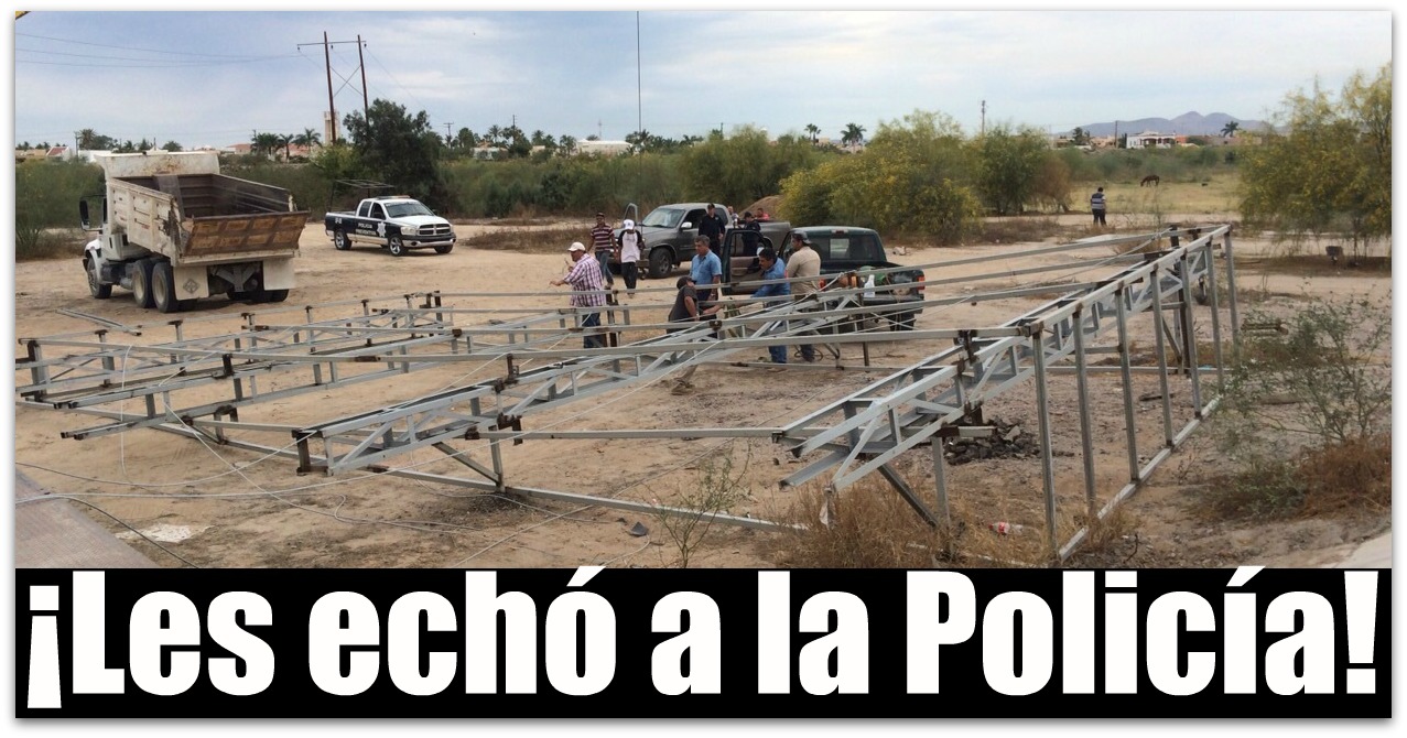 La Paz, B.C.S.- La oficina de Planeación y Regulación Urbana del gobierno municipal, retiró la mañana de este sábado las estructuras donde sería colocada la propaganda del abanderado del PRI a la gubernatura Ricardo Barroso Agramont en la zona conocida como VADO FIDEPAZ, ya que «no reunían las especificaciones de construcción e imagen urbana».