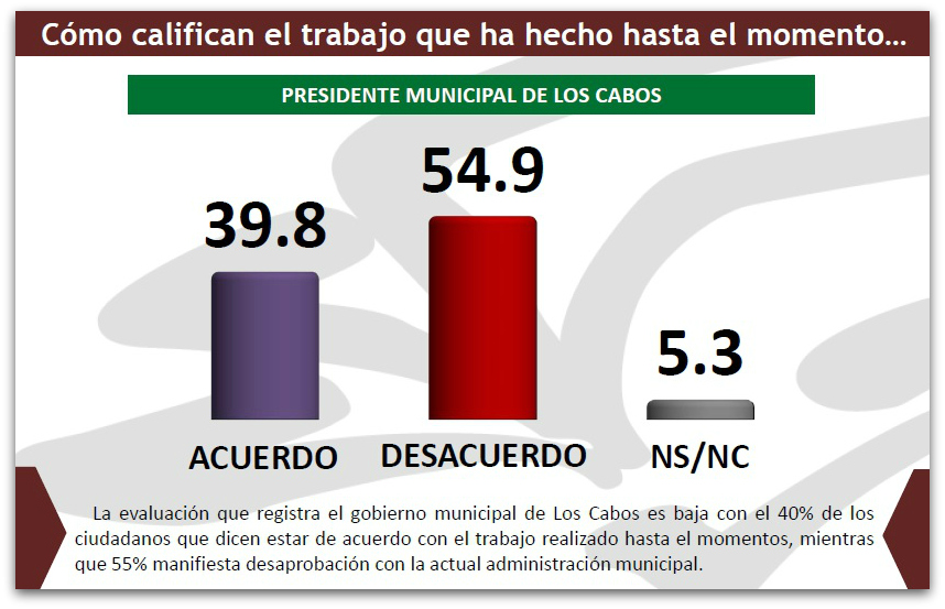 Solo basta observar en las gráficas de esta encuesta, donde el 54.9 de los cabeños está en desacuerdo con la forma en que ha conducido la administración municipal EL TONY.
