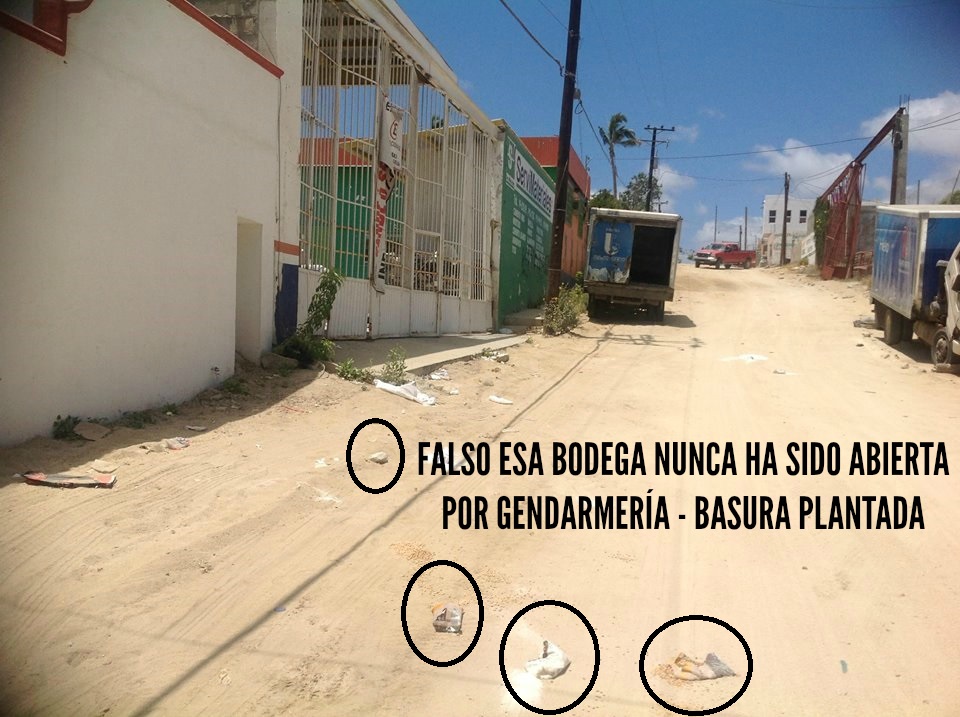 En este lugar nunca ha irrumpido la gendarmería como lo han querido hacer ver. Tampoco han llegado representantes del Instituto Estatal Electoral, ni del Federal. La fotografía que presenta el Grupo Los Cabos es de la calle Carpinteros esquina con Herreros, es a una cuadra de distancia de la bodega que señalan, no corresponde al sitio.