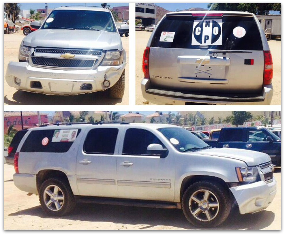 Aunque no se dio una explicación sobre la propiedad del vehículo detenido, una camioneta Chevrolet Suburban, ni los detalles del choque en que estuvo involucrado, se señaló vía redes sociales que era conducido por el candidato priista quien «se dio a la fuga» luego de chocar, a lo que agregaron «estado de ebriedad».