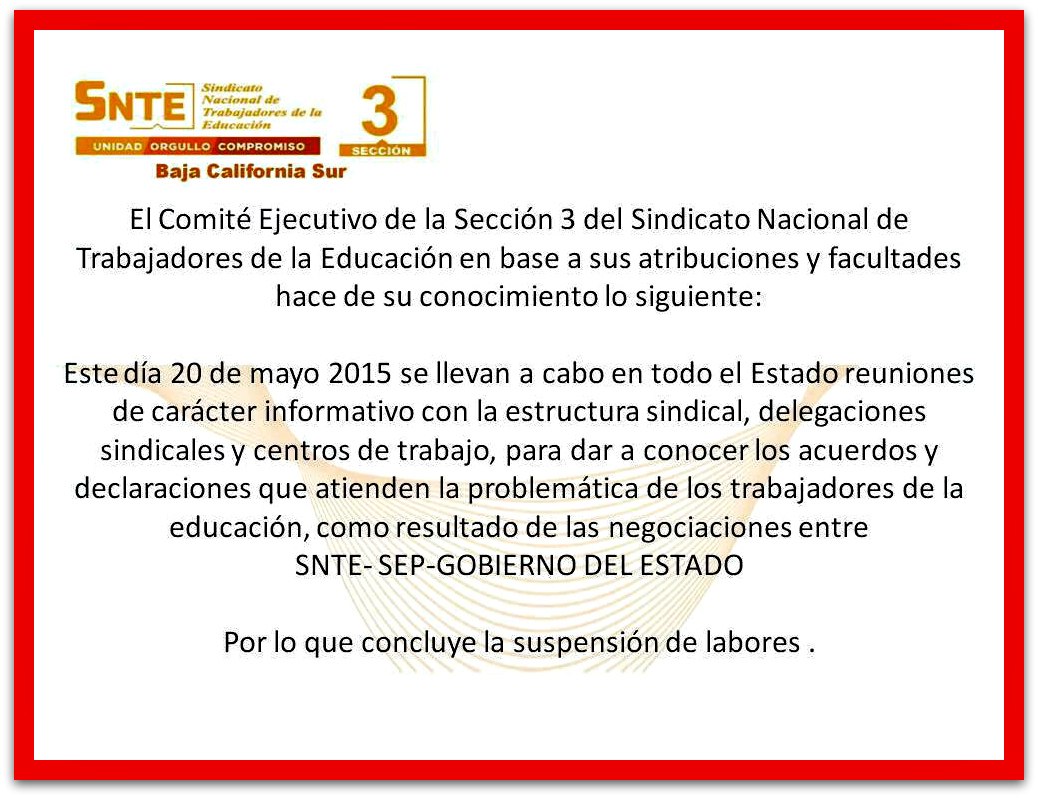 “Hemos culminado satisfactoriamente las negociaciones con el SNTE, el conflicto ha quedado resuelto y en las siguientes horas, se reiniciarán las clases en todo Baja California Sur”, señaló Córdova Urrutia.