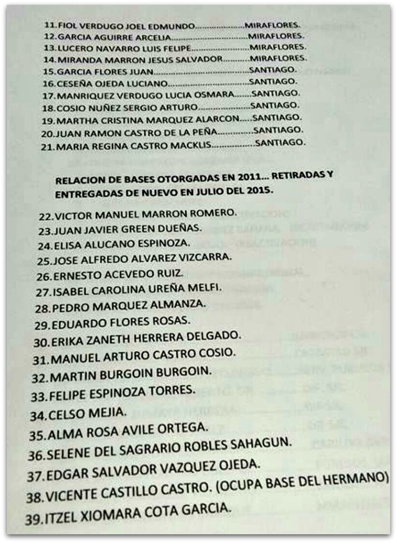 Sin embargo, en esta asignación de bases (como en otras esferas de gobierno en todo el estado), siempre es privilegiado el interés político, los nexos familiares, los compadrazgos y el favoritismo. O también a la inversa, pueden tratarse de casos de evidente justicia laboral, según el punto de vista con que se observen estos movimientos.