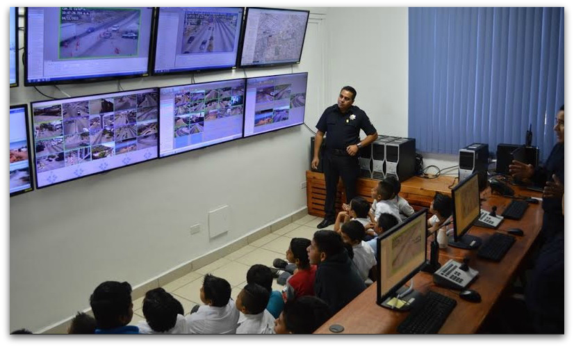 Más tarde, visitaron las oficinas de las unidades de Análisis Táctico y de Operaciones de la Policía Estatal, donde aprendieron sobre la operación del sistema de video vigilancia, para enseguida subirse a la Unidad Móvil del Centro de Control y Comando (C-2) y a una de las unidades de la corporación, mostrando un gran entusiasmo.