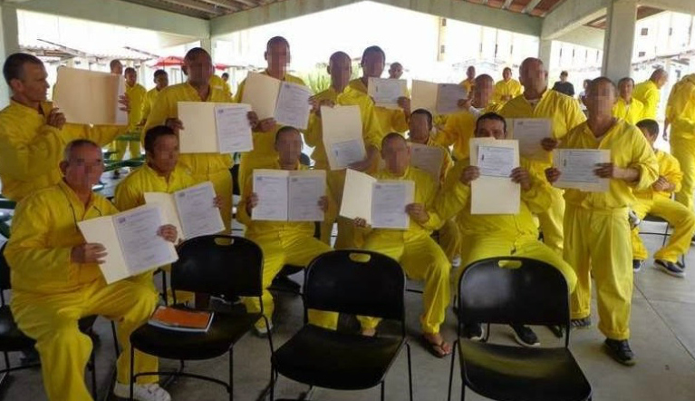 Bien para este grupo de personas que deciden superarse, PERO CARAMBA que tipo de Autoridades tenemos, como es posible que en este dia importante para los internos y tambien para los directivos del centro LOS PONEN EN EL APARADOR vestidos con ese horrible uniforme de prisionero, de perdida ese dia se les pudo permitir usar ropa comun aunque sea para la foto del recuerdo…..NO DAN UNA, Gobierno totalmente fuera de sencillez y calidad humana….