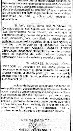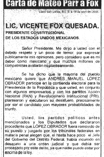 Me dirigo a usted como el posible futuro presidente de MEXICO.