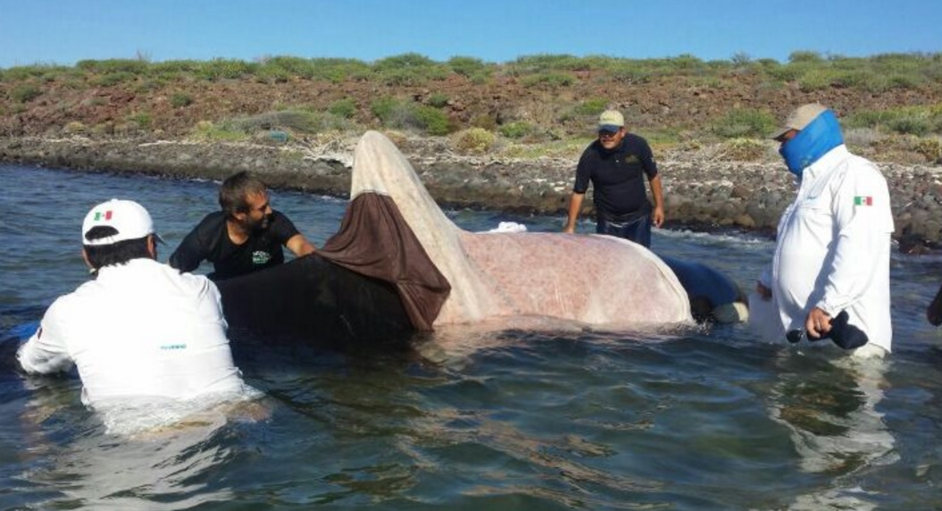 Junto con especialistas de la Comisión Nacional de Áreas Naturales Protegidas (CONANP), se constató que el ejemplar hembra juvenil de seis metros de longitud, se encontraba vivo, varado en una zona rocosa de la costera de Isla Coronado, con solo la mitad de su cuerpo dentro del agua.