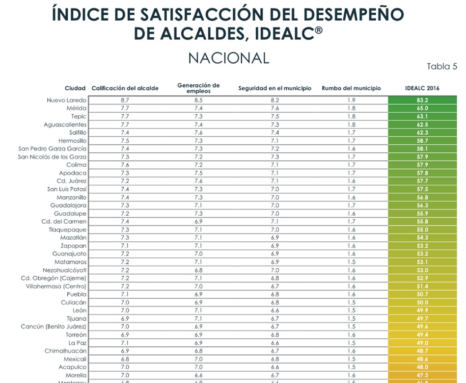 En ese mismo estudio, en el ‘Índice de satisfacción del desempeño de los alcaldes’, la calificación que se otorga a Armando Martínez Vega es de 7.1, arriba del de Tijuana con 6.9, superados por el de Nuevo Laredo en primer lugar con 8.7