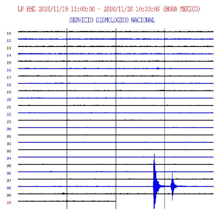 De acuerdo al registro, el primero de los sismos ocurrió a las 3:50 AM del sábado 19 de noviembre con una magnitud de 3.6 y profundidad de 15 kilómetros.
