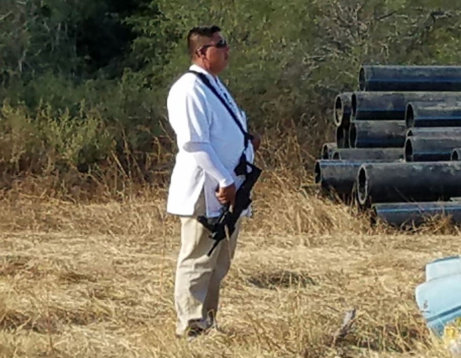 Cuando llegaron al lugar encontraron a guardias armados de la empresa turística Puerto Los Cabos que habían introducido una camioneta pick up de color rojo, además de dos revolvedoras de cemento, violando el cerco perimetral de esa propiedad que está registrada legalmente por el Grupo Inmobiliario Link.