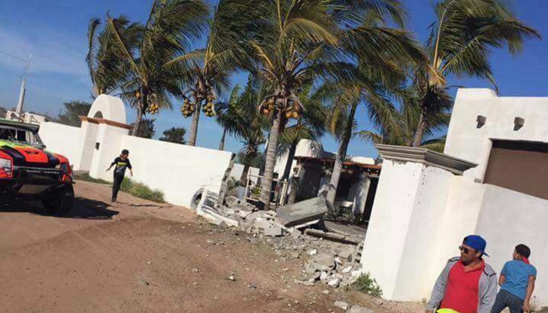 0-a-a-racing-generosoDurante el desarrollo del Domi Rum que tradicionalmente se realiza en el marco del festival internacional de la ballena gris, en la comunidad de Puerto Adolfo López Mateos, el conductor de una de las escuderías perdió el control de su clase 100 y fue a estrellarse contra la barda de una vivienda.