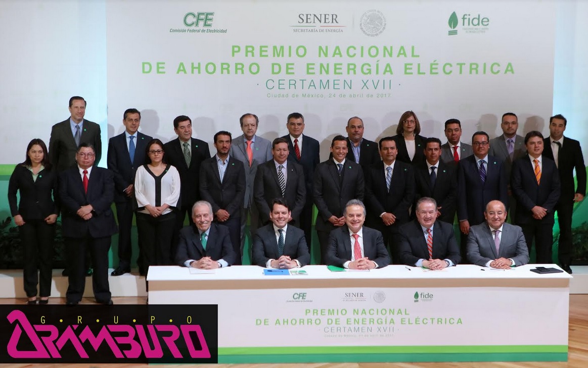 La Secretaría de Energía, la Comisión Federal de Electricidad (CFE) y el Fideicomiso para el Ahorro de Energía (FIDE) reconocieron hoy los logros en materia de ahorro de energía eléctrica a Carlos Arámburo, S.A. de C.V. por obtener el segundo lugar en la categoría de Empresas, organismos e instituciones de comercios y servicios medianas quien recibiera el galardonado premio la representante Legal de la empresa Lic. Sandra Cervantes y el Ing. Hugo Rivera.