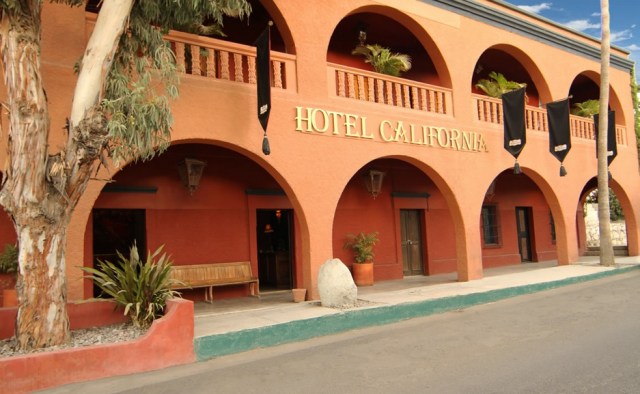 El Hotel California, Se empezó a construir en 1947 por Antonio Wong Tabasco, un extranjero que amo y Trabajo por Todos Santos, BCS y se inauguró el 5 de Febrero de 1950…La Empresaria Paris Hilton nieta del dueño de los hoteles Hilton en el mundo visito el Hotel California influenciada por la canción del mismo nombre y en razón que una de las portadas llevaba la foto del Hotel Beverly Hills, conocido como Pink Palace y ubicado en la avenida Sunset Boulevard, y el gerente de ese Hotel Negó que en su Hotel se aparecieran fantasma (Situacion que no negaban los empleados el Hotel California y la población de Todos Santos). El gerente del Beverly Hills se opuso a que incluyeran en su hotel la realización del video y lo mismo sucedió con otro hotel donde los “Eagles” utilizan una “loby” de su interior, el hotel (el Lido de Hollywood).
