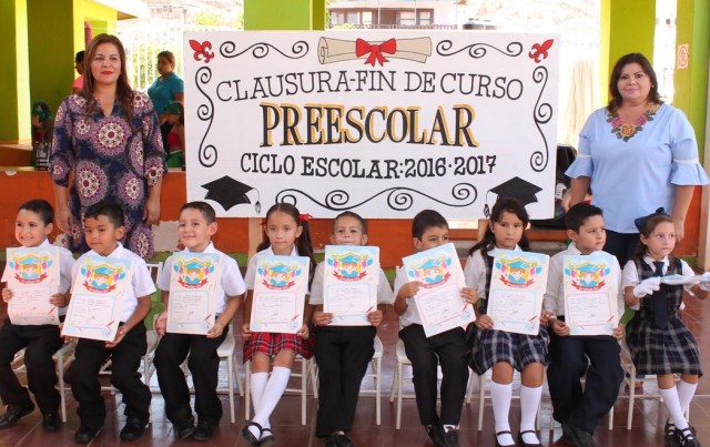 Posteriormente la Directora del DIF, Guadalupe García Rocha, a nombre de la Presidenta de DIF, envió felicitaciones a los pequeños que hoy cumplen con una etapa más en su vida, y agradeció a los padres de familia por creer en esta Institución, al mismo tiempo que felicitó a las asistentes educativas y maestras por el excelente trabajo realizado, para finalmente clausurar los trabajos de fin de cursos de Preescolar 2016-2017.