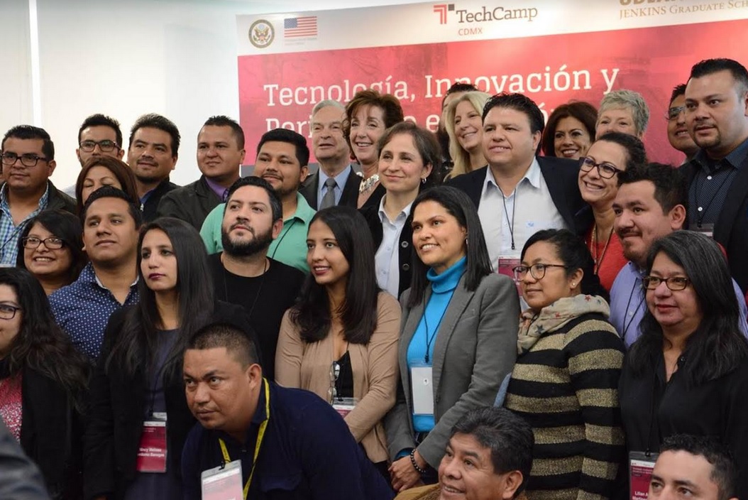 La Embajada de Estados Unidos organizó el 7 y 8 de diciembre un campamento tecnológico (TechCampCDMX) para más de 50 periodistas de México, El Salvador, Honduras y Guatemala. Con apoyo de organizaciones de la sociedad civil y un grupo de capacitadores nacionales e internacionales, el TechCampCDMX ofreció a los participantes información sobre seguridad digital, entrenamiento legal, periodismo de investigación, modelos de financiamiento, campañas de marketing, mapeo de datos, y más.