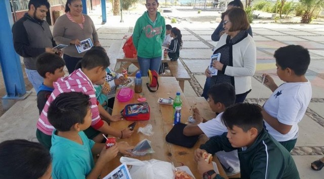 En su reciente recorrido por la comunidad de San Juan de la Costa, también visitó a maestros y alumnos del jardín de niños, primaria y secundaria Fernando Jordán.