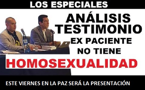 Esta presentación se hace con el patrocinio de la Universidad de Tijuana, Campus La Paz, donde la entrada es gratuita y lleva por objetivo dar a conocer que la homosexualidad se puede revertir y se expondrán casos de éxito de este profesionista, que afirma que ese paso se puede concretar en «cuatro meses».