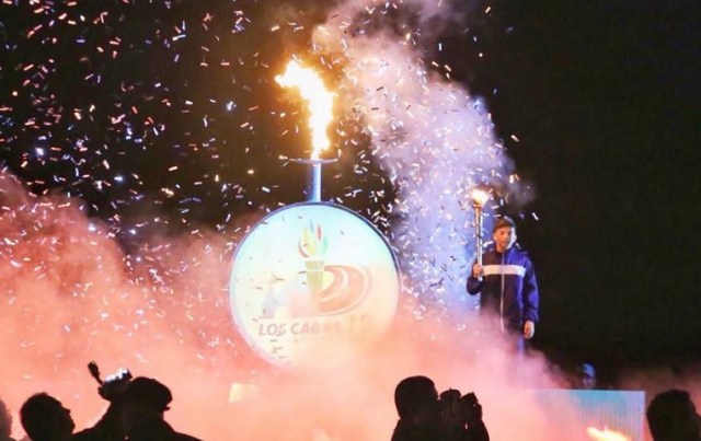 Un grupo de destacados deportistas cabeños portaron el fuego olímpico haciendo el recorrido por la pista de atletismo, hasta culminar con el encendido del pebetero a cargo del beisbolista Ichiro Cano Hernández, medalla de bronce en el campeonato mundial celebrado en Taipéi, China a finales del 2017.