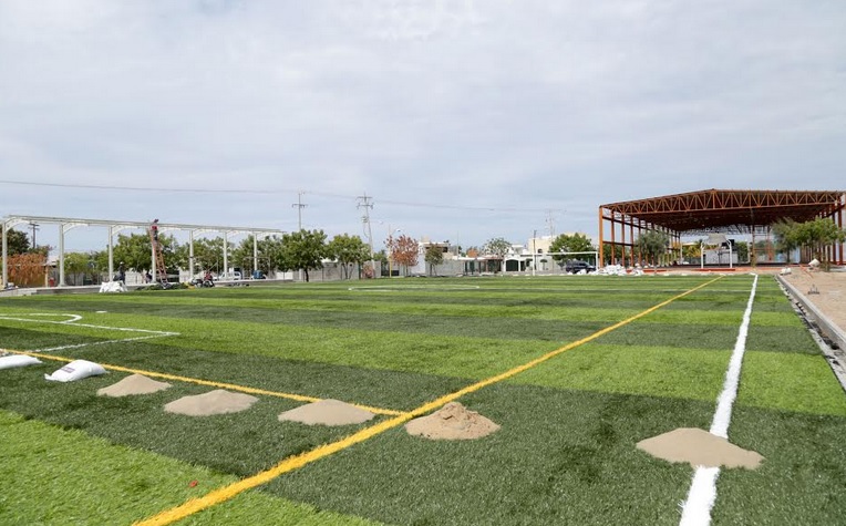 En ese sentido, resaltó que actualmente en este complejo se está llevando a cabo la construcción de gradas con techumbre que albergarán a más de 150 espectadores, además contará con pasto sintético, porterías fijas, y drenes pluviales que evitarán estancamientos en temporada de lluvias y dará una mayor vida útil a la obra.