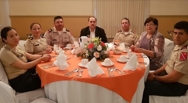 Encabezaron el desayuno que la Sección 3 brindó al Ejército Mexicano, el Coronel de Infantería, Enrique Rangel Carbajal, Comandante del 49 Batallón de Infantería, con la representación del General de Brigada Diplomado de Estado Mayor, Edgar Humberto Flores García, Comandante de la 3ra. zona militar; profesor José Nicolás Gutiérrez Domínguez, Secretario General de la Sección 3 del SNTE en la entidad; profesor Edgar Cuevas García, representante del CEN del SNTE en la Sección 3 en B. C. Sur; Profesor Héctor Jiménez Márquez, Secretario de Educación Pública en B. C. Sur; Coronel Médico Cirujano, Román Chávez Blanco, Director del Hospital Militar Regional; Profesor Juan Manuel Manríquez Olivas, responsable del Programa Nacional SNTE – SEDENA en la Sección 3 del SNTE; Teniente Coronel de Infantería, Alejandro Macías Sifuentes, Segundo Comandante del 49 Batallón de Infantería y la profesora Rinna Xóchitl Orozco Acevedo, Secretaria de Programas Nacionales de la Sección 3 del SNTE en Baja California Sur.