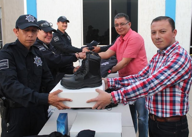 Estas entregas se hicieron de manera simbólica a los delegados municipales de dichas comunidades, otorgando a cada uno de los elementos de la corporación policíaca, para un mejor desempeño del servicio y efectividad en el trabajo, 2 uniformes tácticos y un uniforme de gala, 2 pares de botas, 2 guerreras y una chamarra, a través de los programas Fortalecimiento para la Seguridad (FORTASEG) y Fondo de Aportaciones para la Seguridad (FAFP).