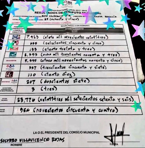 Santa Rosalía (California).- La duda se ha despejado hoy temprano entre los seguidores de Felipe Prado Bautista que por el Partido Nueva Alianza se alzó participó por la alcaldía de Mulegé en el pasado proceso, ante la poderosa maquinaria que acuerpó a la panista Edith Aguilar Villavicencio. Se ha confirmado el triunfo de Felipe Prado.