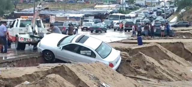 Cabo San Lucas (California).- Las lluvias causadas por las bandas nubosas del huracán John, provocaron hoy temprano un minicaos en este puerto debido a que algunas de las calles principales se transformaron en arroyos caudalosos generado algunos daños menores por inundaciones, sobre todo en el vado Aguajitos donde 9 vehículos fueron afectados.