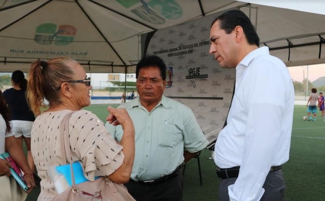 En la cancha de fútbol de dicha colonia, agentes del Ministerio Público de la Subprocuraduría de Atención a Víctimas de Delitos Sexuales y Contra la Familia, de la Unidad de Atención Temprana y Justicia Alternativa atendieron denuncias y dudas de las y los asistentes.
