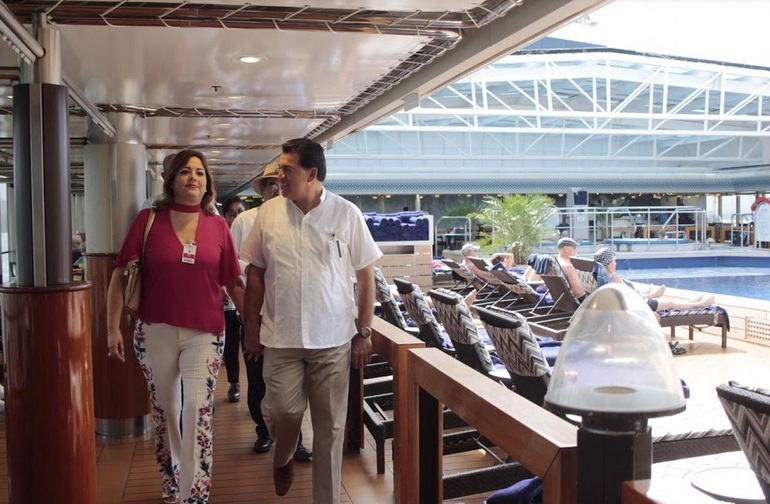 La gran embarcación cuenta con aproximadamente 2,100 pasajeros, los cuales disfrutaron de eventos artísticos, la gastronomía, las bellezas naturales y los servicios de hospitalidad que los paceños suelen brindar.