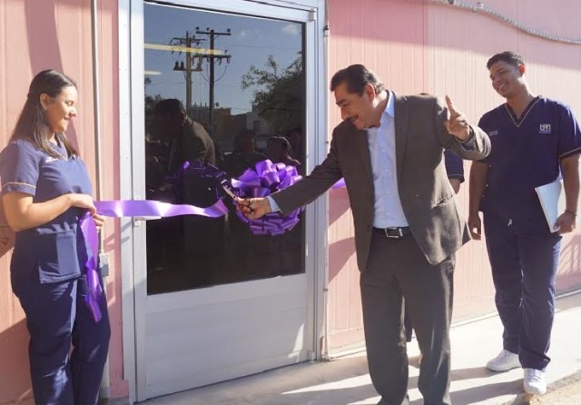 El profesor Héctor Jiménez Márquez, Secretario de Educación Pública en Baja California Sur y la doctora Judith Moreno Berry, rectora de la Universidad Mundial, inauguraron los nuevos consultorios de fisioterapia y el taller de diseño e industria del vestido de la institución superior.