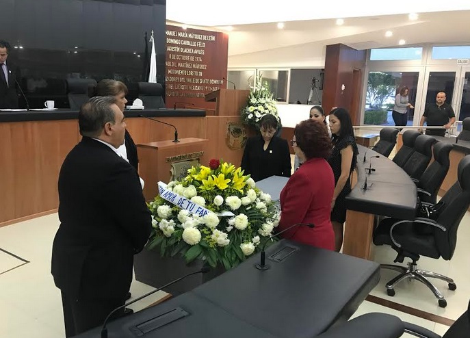 Por la XV Legislatura montaron guardia ante el ferétro la Presidenta de la Junta de Gobierno y Coordinación Política, Diputada Milena Quiroga, las diputadas Elizabeth Rocha Torres y Maricela Pineda, Perla Guadalupe Flores Leyva, Mercedes Maciel Ortiz y el Diputado Carlos Van Wormer Ruiz.