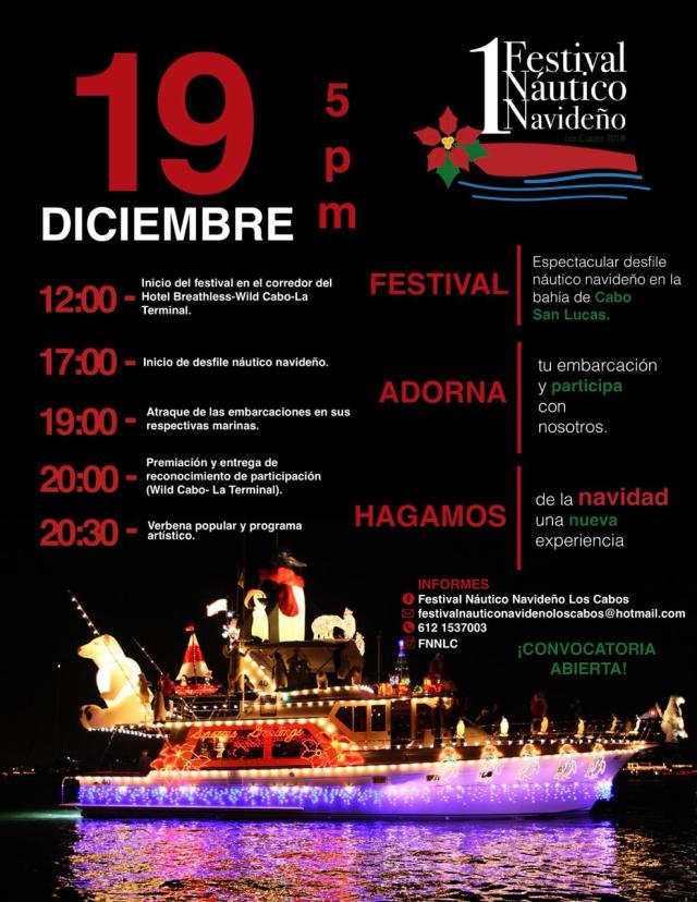 La Secretaría de Turismo, Economía y Sustentabilidad (SETUES) invita a participar en el primer Festival Náutico Navideño (FNNLC), que se desarrollará en la Bahía de Cabo San Lucas, en el municipio de Los Cabos, este 19 de diciembre a partir de las 17:00 horas, dio a conocer el titular de la dependencia, Luis Humberto Araiza López.