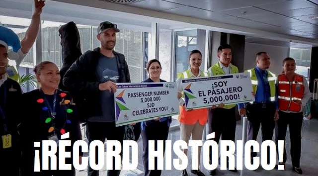 El Aeropuerto Internacional de Los Cabos rompe récord llegando al “Pasajero Cinco Millones”, celebrándolo en presencia de los usuarios procedentes de San Francisco en el vuelo de Alaska Airlines 279.
