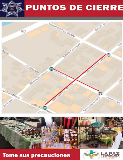 La Dirección General de Seguridad Pública, Policía Preventiva y Tránsito Municipal informa a los usuarios de la vía pública, ciudadanía y público en general, que por motivo de la instalación del Mercado Orgánico, se realizará el cierre a la circulación en zonas del Centro Histórico de la capital del estado.