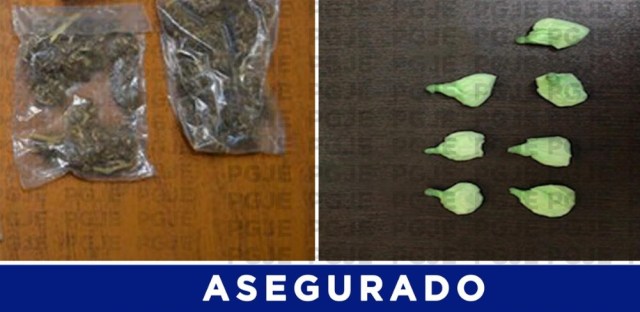 Derivado de esta acción, se le encontró en posesión de siete envoltorios de sustancia granulada y cristalina, con las características del cristal, correspondiente a 550 dosis y dos bolsas de plástico con vegetal verde y seco con las características de la marihuana, equivalente a 40 dosis.