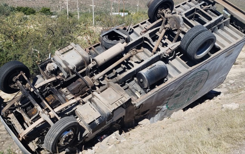 La Paz (California).- Fue a las 9:10 de la mañana de hoy, que se recibieron llamadas de emergencia al módulo C4 de esta ciudad, donde se informaba que dos camiones de carga habían chocado de frente y uno se volcó luego de salirse de la carretera en el libramiento Santiago Oceguera.