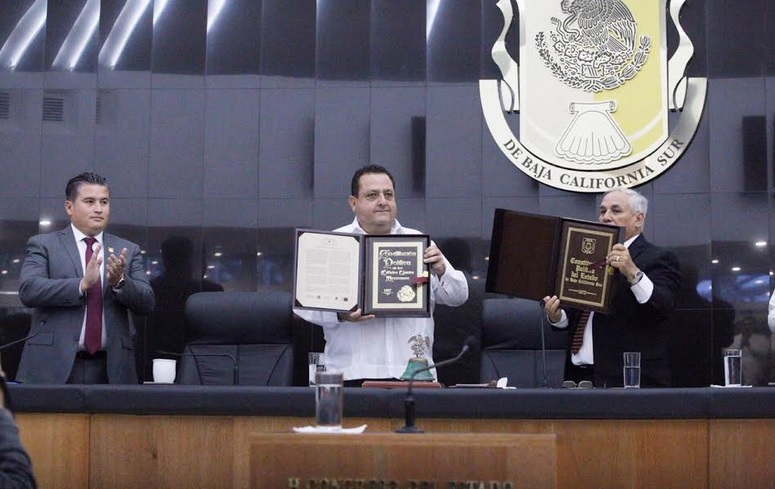 Durante la sesión pública solemne de Apertura del Segundo Periodo Ordinario de Sesiones, correspondiente al primer año de ejercicio constitucional de la XV Legislatura a la que asistió, el gobernador Carlos Mendoza Davis hizo entrega de réplicas fiel de las Constituciones Políticas de los Estados Unidos Mexicanos y de Baja California Sur, “como un reconocimiento a la obediencia que debemos a estas leyes y al espíritu de unidad y respeto a las soberanías que éstas nos mandatan”, señaló.