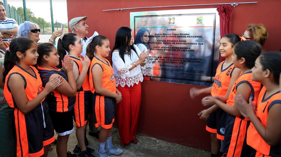 Con una inversión total de 8 millones 226 mil 649.57 pesos provenientes del recurso federal Ramo 23 y de los cuales, 396 mil 479.57 pesos fueron aportados por el Gobierno de Los Cabos; la alcaldesa Armida Castro Guzmán, develó la placa que dio por inaugurado el parque integral de Villa Bonita “Rafael T. Sandoval Mantecón” y el arranque del programa de mejoramiento de espacios públicos “Mi Parque Vive”, que tiene como objetivo construir, rehabilitar, así como llevar a cabo acciones que contribuyan a la integración social con alternativas de recreación y sano esparcimiento previniendo conductas de riesgo en la niñez y juventud.