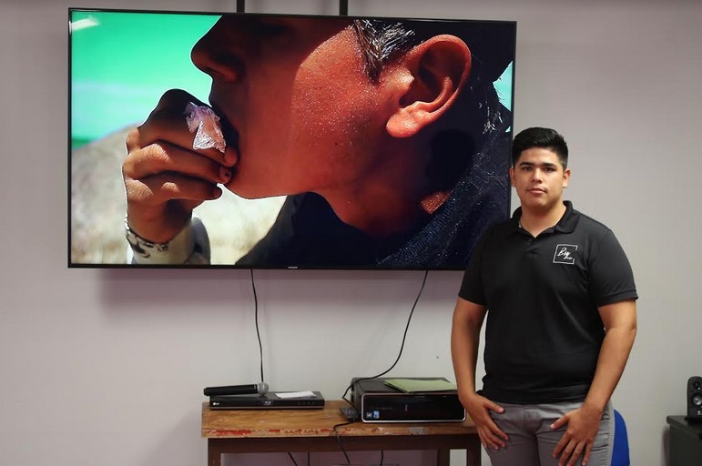 Daniel Alejandro Rochín Rodríguez, estudiante de 6to. Semestre de la Licenciatura en Comunicación de la Universidad Autónoma de Baja California Sur (UABCS), presentó la obra con que ganó la pasada edición del concurso “Cineminuto: desplastifícate”, celebrado en el marco del 16 Festival de Cine de Todos Santos.