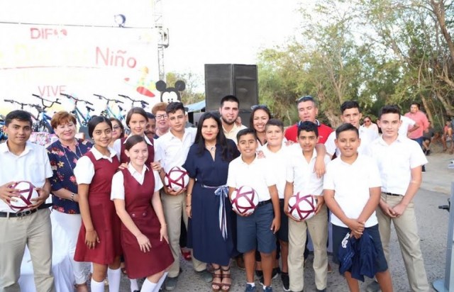 En su mensaje, la alcaldesa Armida Castro Guzmán felicitó a los pequeños por su día, al tiempo que compartió con las familias de Miraflores que en conjunto con el Festival del Día del Niño se promueve la entrega de los programas municipales para beneficio de los habitantes del municipio de Los Cabos, entre ellos «Mi Parque Vive», Reforestación, Vive Vigilante, entrega de material deportivo, uniformes, arranques de comités de participación ciudadana y escuelitas técnicas, entre otros.