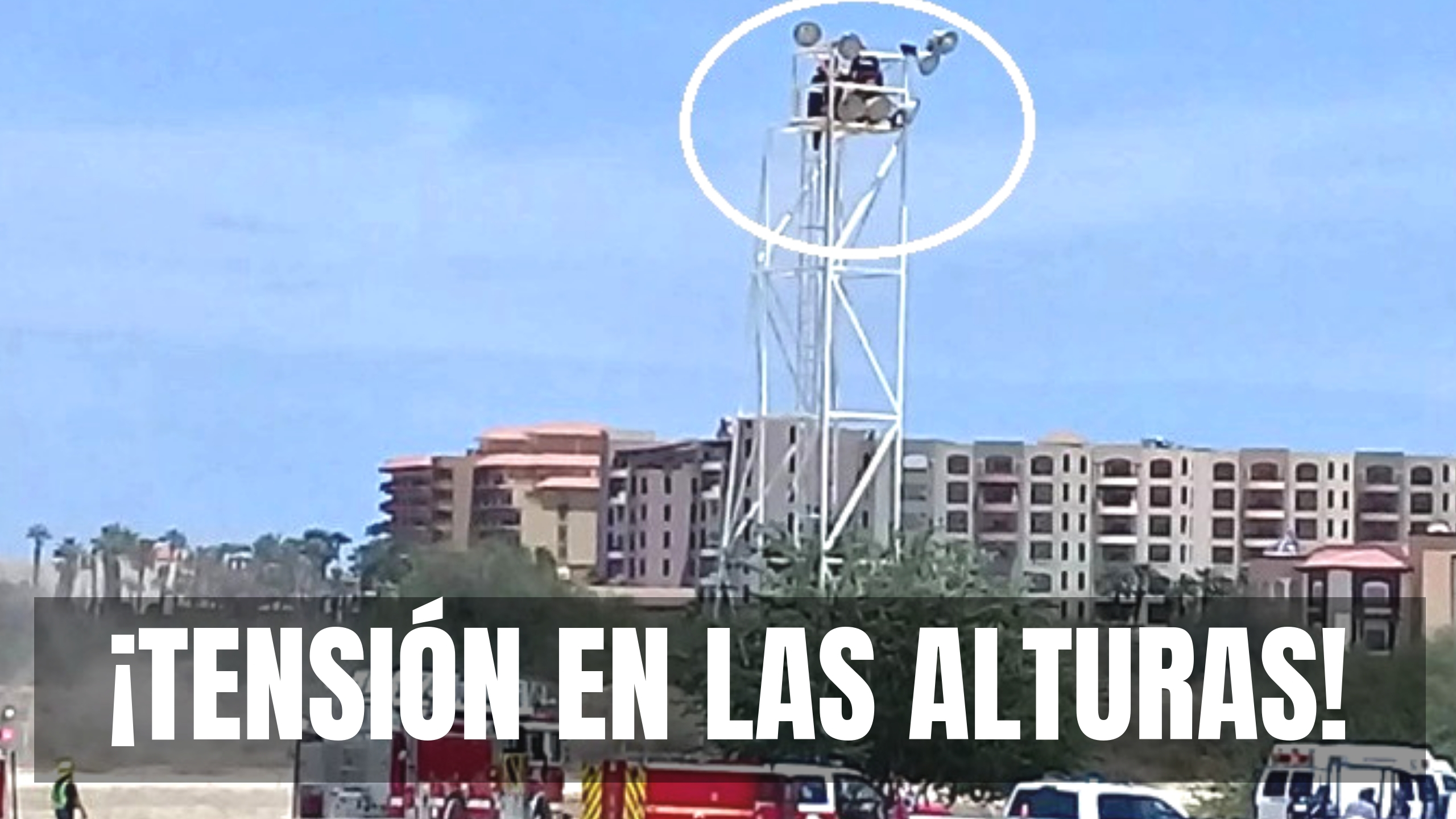 Cabo San Lucas (California).- Testigos dieron aviso a los número de emergencia a las dos de la tarde de hoy, que una mujer había subido a una de las torres de iluminación de 20 metros de altura del campo de fútbol Yenekamú, donde estaba gritando que deseaba acabar con su vida.