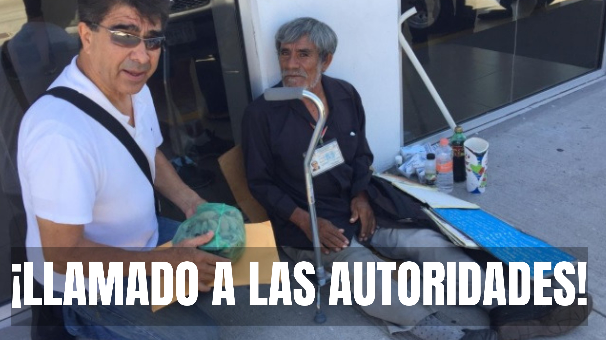 La Paz (California).- Hoy por la mañana el señor Arturo Palafox Hernández, recibió un par de bastones para caminar de parte del licenciado José Bernal Romero afuera de una sucursal bancaria en las calles de Abasolo y Colima donde solicita ayuda económica de los peatones, luego de haber quedado imposibilitado para trabajar por la agresión a golpes sufrida en el mes de enero de 2015.