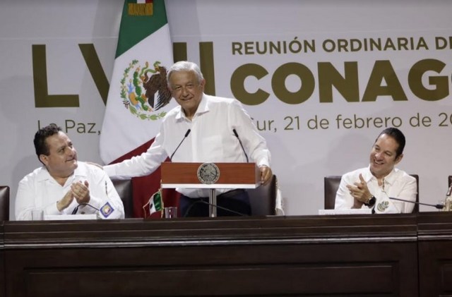 A diferencia de lo que nos ha tocado ver de cerca en otras épocas del Presidencialismo, como ‘labor controladora’ del Estado Mayor Presidencial (ya desaparecido), cuando el Presidente en turno ‘debería conocer previamente’ un discurso del algún gobernador o funcionario, para un evento de importancia como el que fue el pasado viernes, para la toma de posesión Carlos Mendoza en la dirigencia de la CONAGO, esta vez pudimos comprobar que ‘AMLO desconocía el discurso’, por el que demostró interés y cierta sorpresa al escuchar, con gesto afable, la propuesta del Gobernador de BCS, en el sentido de “convocar a ‘un gran acuerdo nacional’ para generar crecimiento económico, acabar con la pobreza extrema y respetar el medio ambiente”.